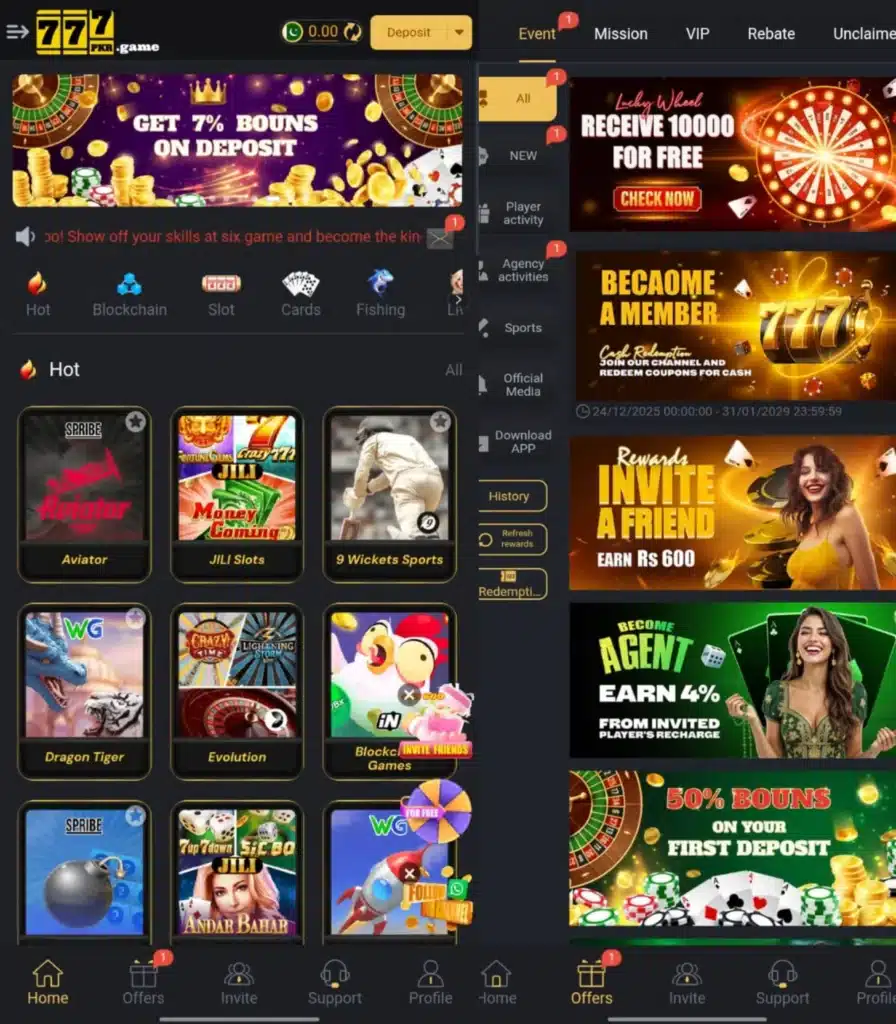 One of the key attractions of 777PKR is its user friendly interface, fast withdrawal options through local wallets like JazzCash and Easy Paisa, and engaging bonuses such as welcome rewards, daily login bonuses, and referral incentives. The platform focuses on providing a stress free gaming experience, with fun graphics, exciting sound effects, and a smooth layout that keeps players entertained.