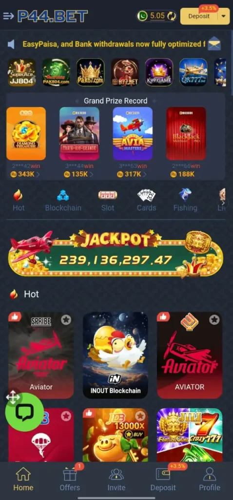 In P44 Bet Game, users may see a digital balance that can show earned figures. These figures represent points or credits collected from gameplay, bonuses, daily activities, or referral programs. When certain conditions are met, these credits may be withdrawn through local payment methods like Easy Paisa or JazzCash.